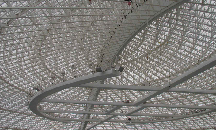 该网架加工丰城公司名目师表示,比来几年来国内能源根底设置装备摆设装备摆设建立步伐加快,包括核电站用钢、风电用钢、锅炉用钢架等,表现出历久需要茂密。铁路纽带运输本领已经发展成为纽带和纽带的一种趋势。诸如城市地铁、轻轨、城铁和高架桥等城市建筑用钢范围将会不休承继减少。在当下国内倡导的绿色低碳的可承继发展理念下,可摄取材料将会呈现网架化结构室第高速发展的卓越趋势。